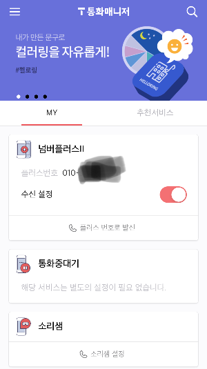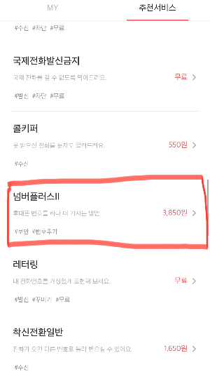 기존에 skt를 이용했던지라 넘버플러스 서비스도 추가하였는데